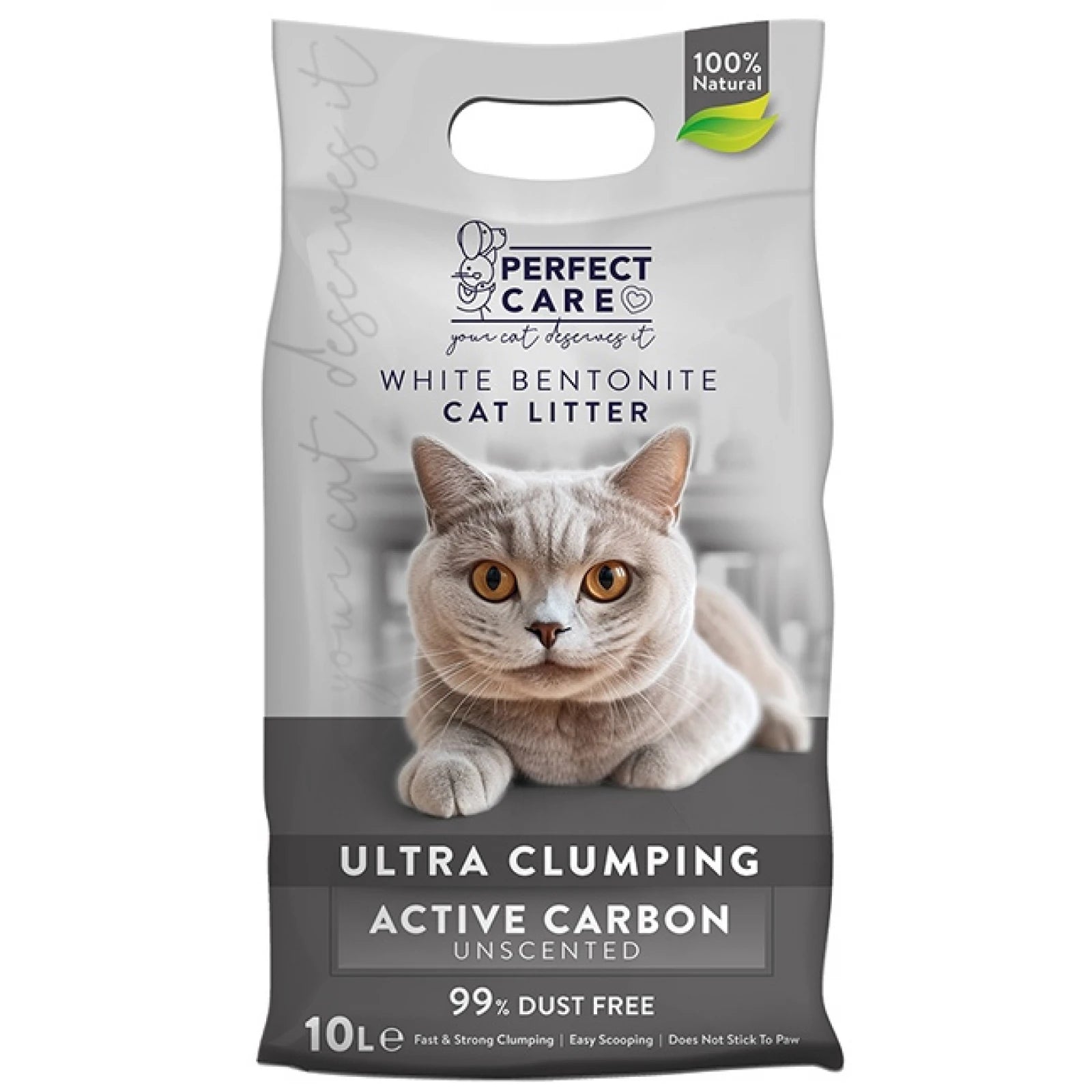 Άμμος Γάτας Perfect Care Active Carbon Μπετονίτης 10lt. Άμμος υγιεινής από λευκό μπετονίτη με ενεργό άνθρακα.